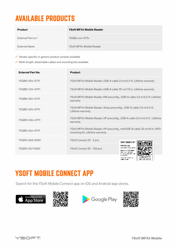 Search for the YSoft Mobile Connect app on iOS and Android app stores. YSoft MFX4 Mobile