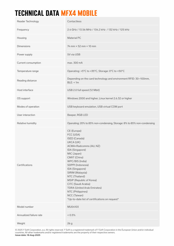 © 2025 Y Soft Corporation, a. s. All rights reserved. Y Soft is a registered trademark of Y Soft Corporation in the European Union and / or individual countries. All other trademarks and / or registered trademarks are the property of their respective owners. Issue date: 18-Aug-2025